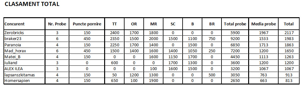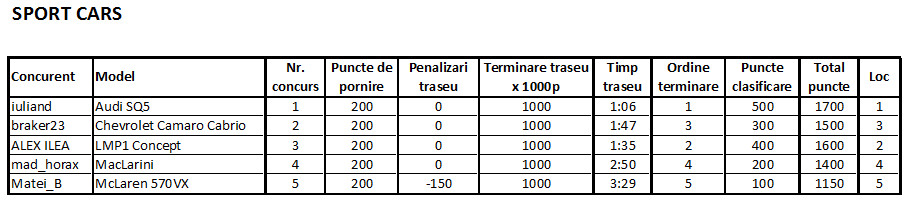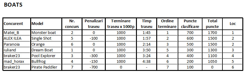 Regulamentul concursului a fost publicat aici. Clasamentul a fost urmatorul: