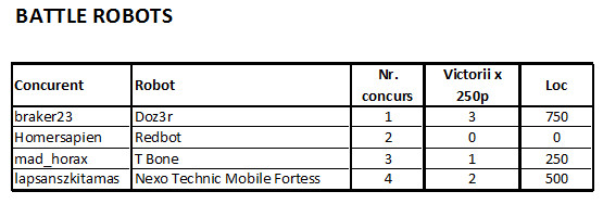 Au intrat in concurs 42 de modele in total, construite de 9 designeri, carora li s-au alaturat subsemnata, ca si co-organizator si alti 2 membri RoLUG, cu roluri importante in desfasurarea evenimentului. Probele au fost: