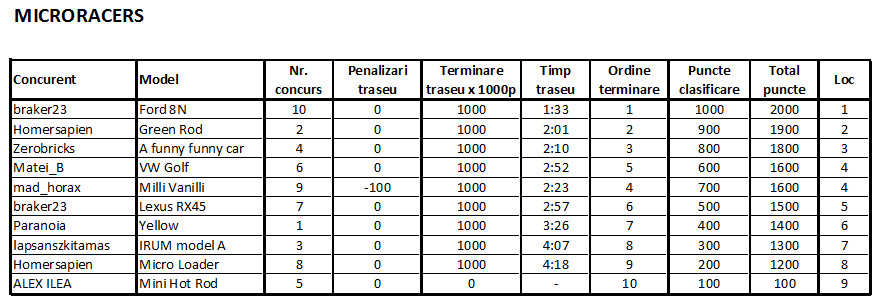- Microracers – 10 modele
